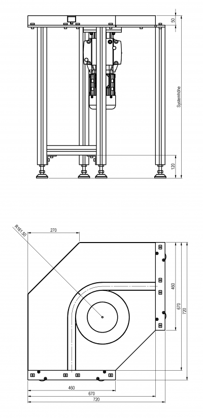 驱动模块用于驱动传输链。输送链通过正齿轮电机驱动的链轮连续输送。Das Antriebsmodul dient zum Antreiben der Transportkette. Dabei wird die Transportkette über ein Kettenrad, das mittels einem Stirnradgetriebemotor angetrieben wird, kontinuierlich weitertransportiert.